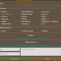 Ta podstrona jest bardzo podobna do podstrony dodawania przychodu. Tutaj tylko masz jedną dodatkową opcję – metody płatności. Możesz wybrać, której metody płatności użyłeś/aś podczas zakupów.