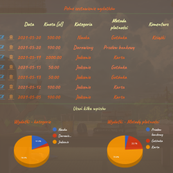 Na górze zestawienia zauważysz krótki widok, który zawiera tylko zapisy zgrupowane i zsumowane po kategorii. Poniżej znajdują się bardziej rozwinięte zestawienia, gdzie możesz znaleźć wszystkie szczegóły. Tam również jest możliwość usunięcia poszczególnych zapisów czy ich edycji.