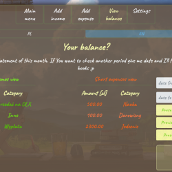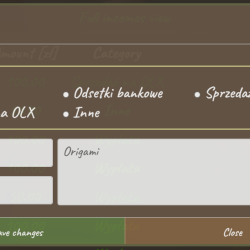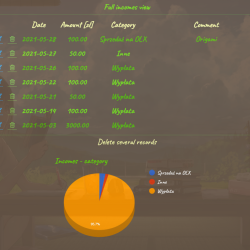 Here You can add some incomes. Just choose the category, type an amount, date and, if You want, a comment too. Here is effect of that, what I’ve written about above. I’ve chosen Polish language of startup data and here I have Polish names of startup categories.